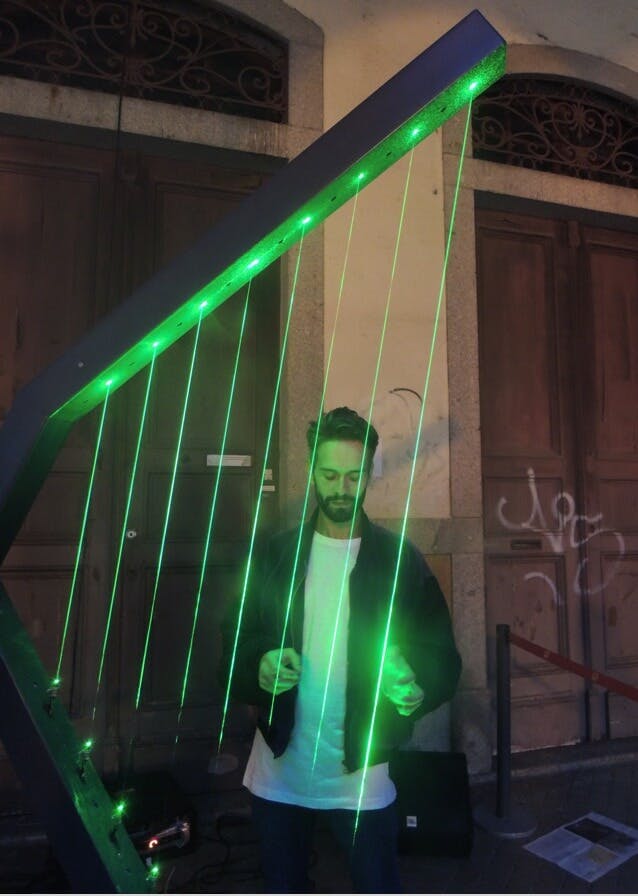Harpa Laser is the result of a shared passion for music, art and technology between Nuno Santos and Rui Antunes.